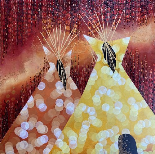 36×36 inches. Acrylic & genuine gold leaf on canvas